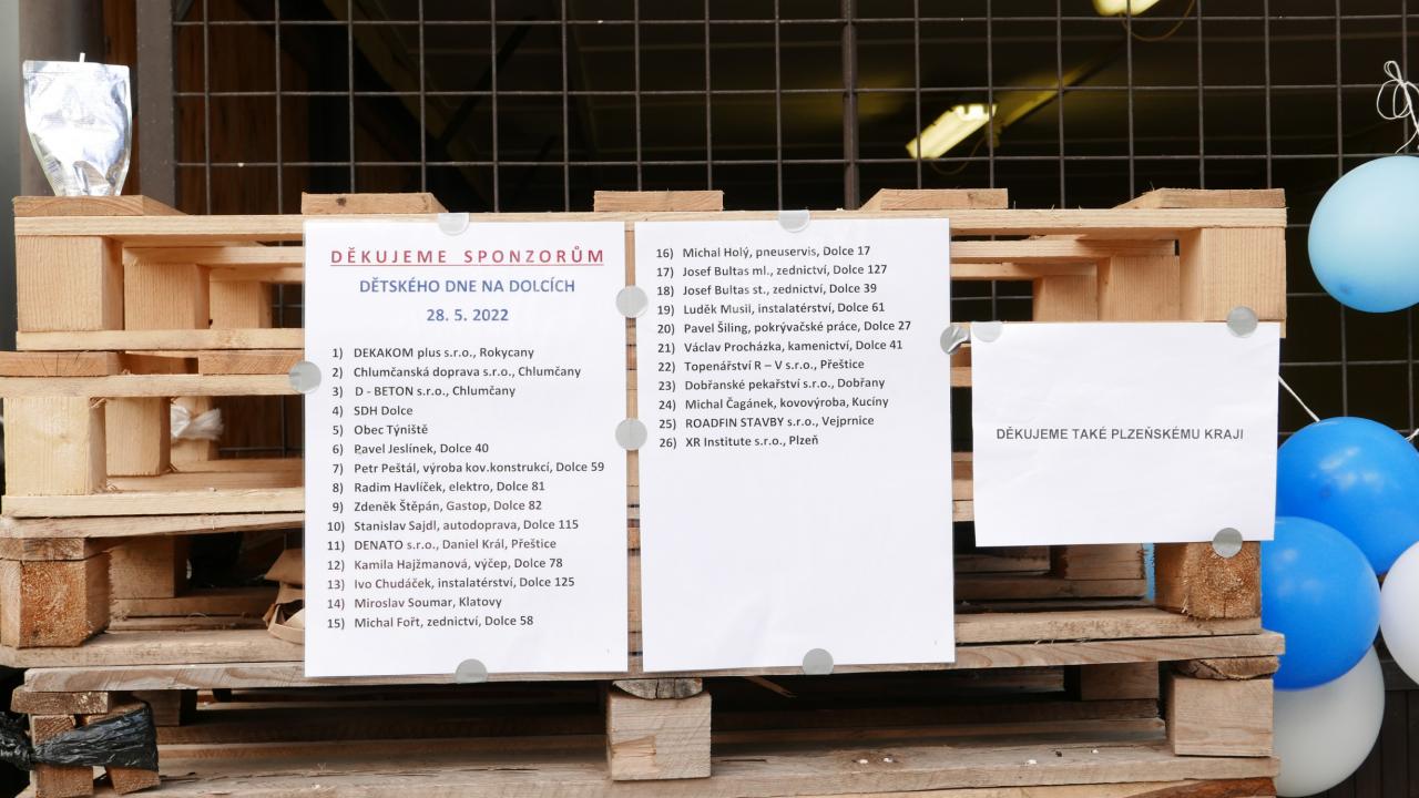 Děkujeme všem, kteří se podíleli na organizaci, hasičům za obsluhu ve stánku a poděkování patří rovněž všem sponzorům, kteří nám v podstatě celý dětský den zaplatili. Někteří z nich nejsou místní, a přesto přispěli. Děkujeme!