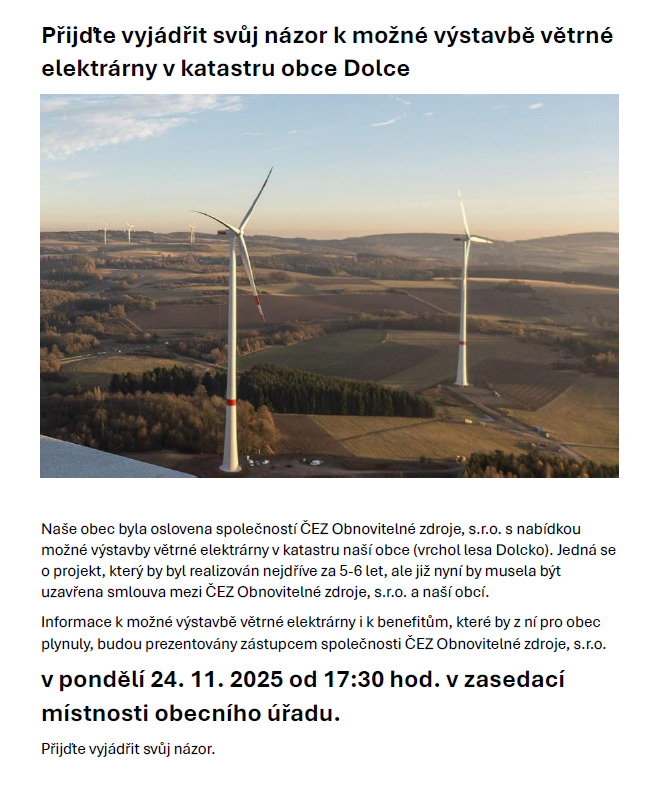 Setkání k možné výstavbě větrné elektrárny